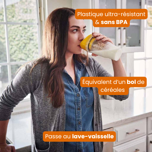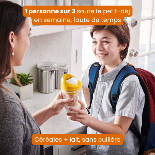 Ajoute tes céréales préférées et referme. Emporte ton petit-déj partout, proprement.